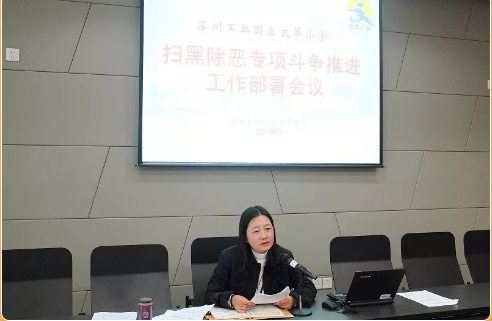 为认真贯彻落实党重要指示精神,深入推进园区教育系统扫黑除恶专项斗争工作,根据《苏州工业园区教育系统关于进一步推进扫黑除恶专项斗争工作方案》精神,切实保护全体师生的合法权益,确保校园和谐平安,5月9日下午,苏州工业园区文萃小学召开“扫黑除恶”专项斗争推进工作部署会议。