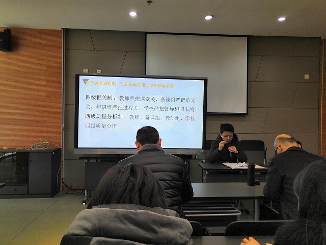 会议初始,陈校长带领大家学习了学校教研组长、备课组长职责细则,鼓励大家做好表率,在学校教学工作中起到先锋模范骨干作用。随后,教导处陶主任为大家详细解读了本学期教学条线各项工作规划,分别从完善管理机制、聚焦体验课堂、加强专业引领、开展学科体验活动等方面进行了工作布置。信息中心张琰主任围绕学校信息化工作,就E加互动平台、翻转课堂、微课程教学等方面进行了条线工作提醒。学校信息化条线分管孙校长就校园信息化建设进行了交流和分享,他鼓励大家积极参与到智慧校园建设中来,用信息技术服务、指导教学,促进学校信息化工作再上新台阶。