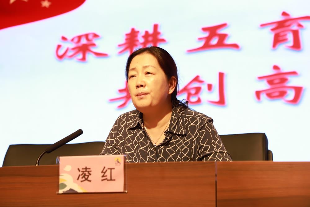 凌红校长高屋建瓴,聚焦国家“十四五”高质量发展主题词,就本学期学校工作作出全面梳理:党建引领,逆行抗疫;品质花开,云端树人;团队建设,凝力并进;行知科研,创新攀高;萃勤服务,安全护航。她指出,疫情之下,工作节奏快,涉面广,事务多,各位教师要把工作做实做细,精益求精,让优秀和卓越成为一种习惯。随后,凌校对全体文萃人这一学期的拼搏付出给予高度肯定。