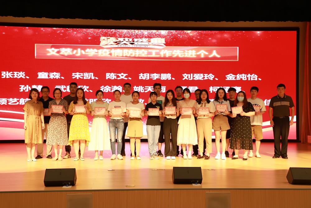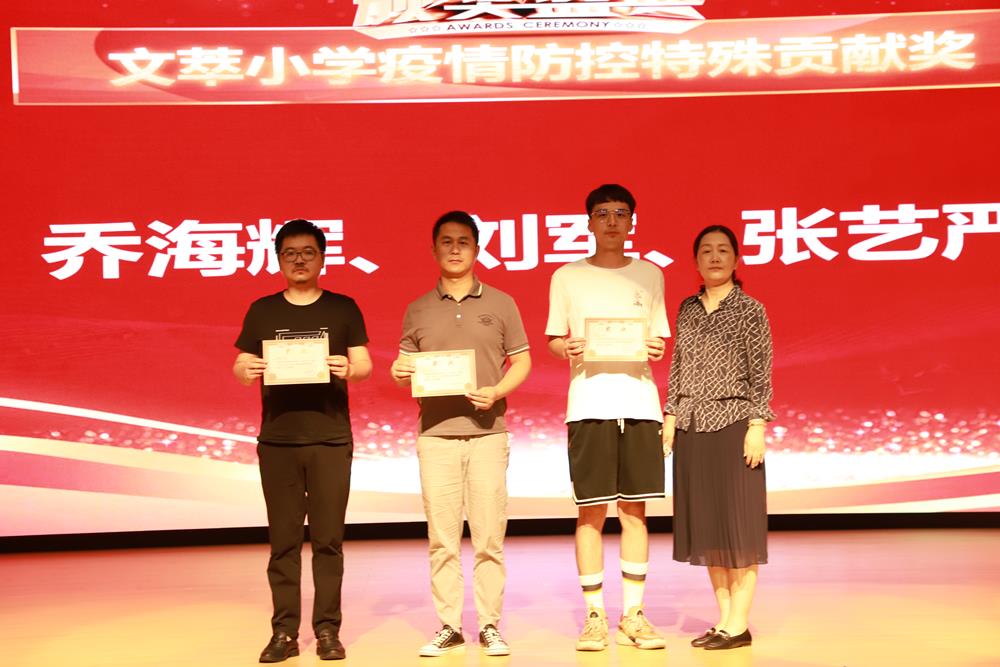 大会开启第一项议程——学校防疫工作先进表彰。乔海辉、刘军、张艺严三位教师获评文萃小学疫情防控特殊贡献奖;张琰、童森等二十位教师获评文萃小学疫情防控工作先进个人。文萃家人敢于担当,善于奉献,我校也因此荣获了苏州工业园区教育系统疫情防控先进集体称号。