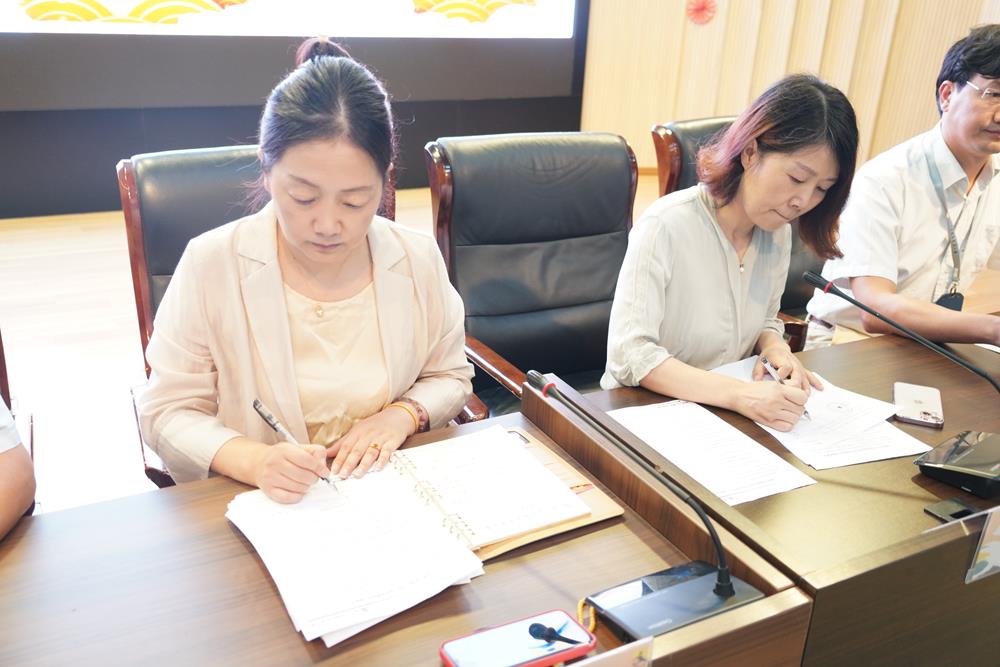 大会接近尾声,安保处带领全体教师签署安全责任书,师训处带领全体教师签署师德师风承诺书。