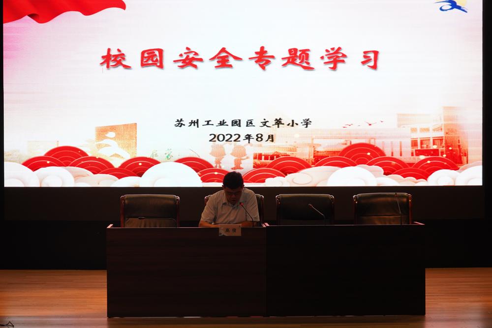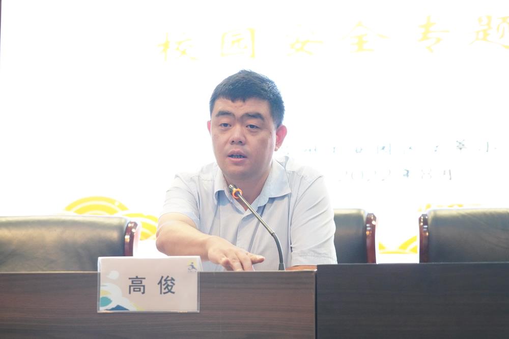 高俊副校长作校园安全工作专题培训,明确了新学期防疫工作和师生安全工作的重点,并强调安全工作只有起点没有终点,新学期每位教师都要警钟长鸣,守土尽责,坚决织密扎牢校园安全网,共建和谐平安的校园。