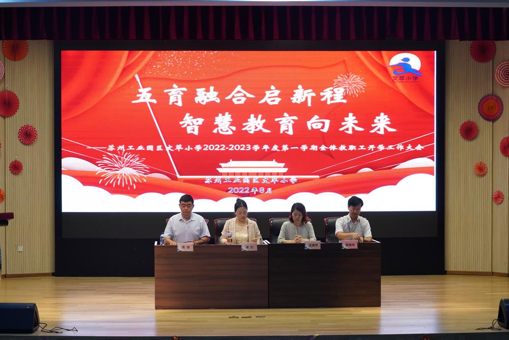 卷云收夏暑,新雨带秋岚。8月27日上午,苏州工业园区文萃小学在文心剧场召开了全体教职工开学工作大会。大会由校办蒯江萍主任主持,学校行政领导及全体教职工参加会议。