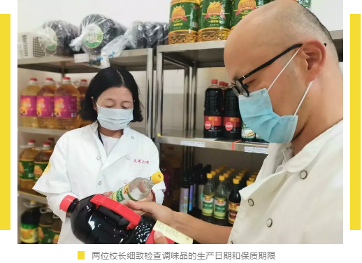 开学第一天,牵挂着学生用餐健康的校领导们早早地来到了食堂,深入了解食堂的准备工作,关注新生的就餐情况。
