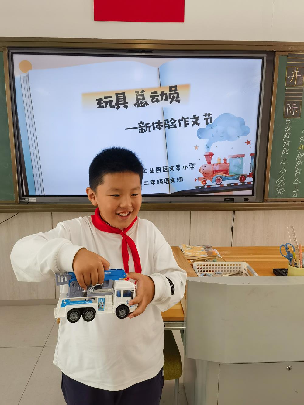 近日,文萃小学二年级开展了学生“玩具总动员”新体验作文节活动。孩子们把自己最喜欢的玩具带到了校园,与同伴快乐分享,畅快交流。