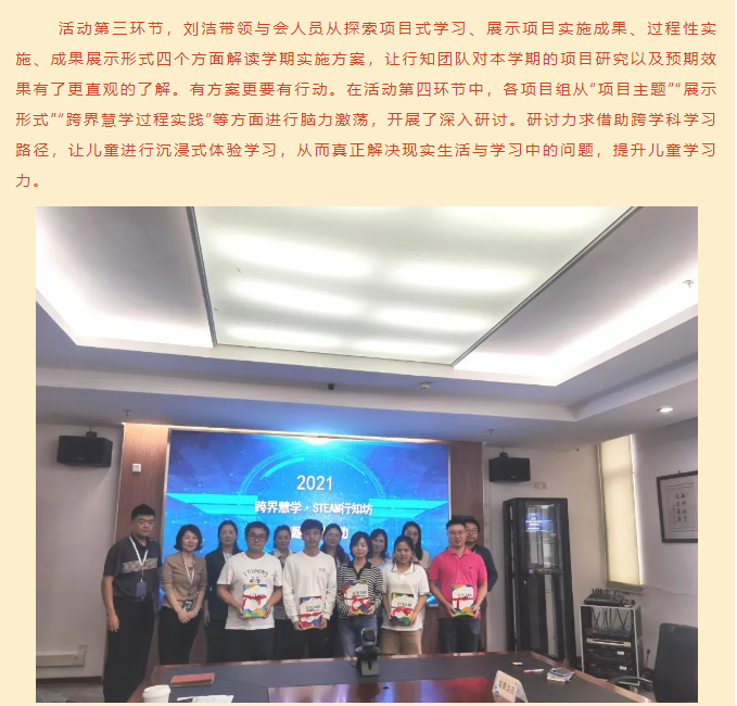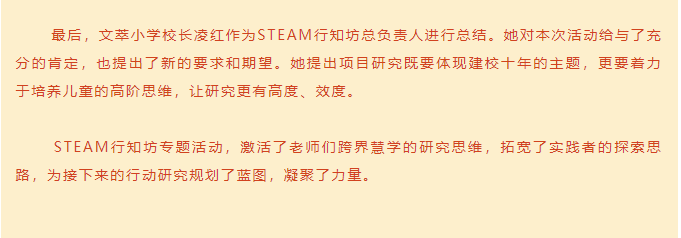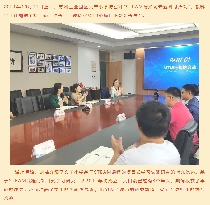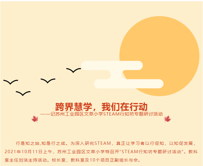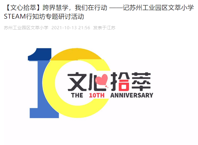 跨界慧学,我们在行动 ——记苏州工业园区文萃小学STEAM行知坊专题研讨活动 来源: 发布时间:2021-10-14 10:50:57 浏览次数: 次 【字体:小 大】 终审:文萃教科室 分享到: 【打印正文】