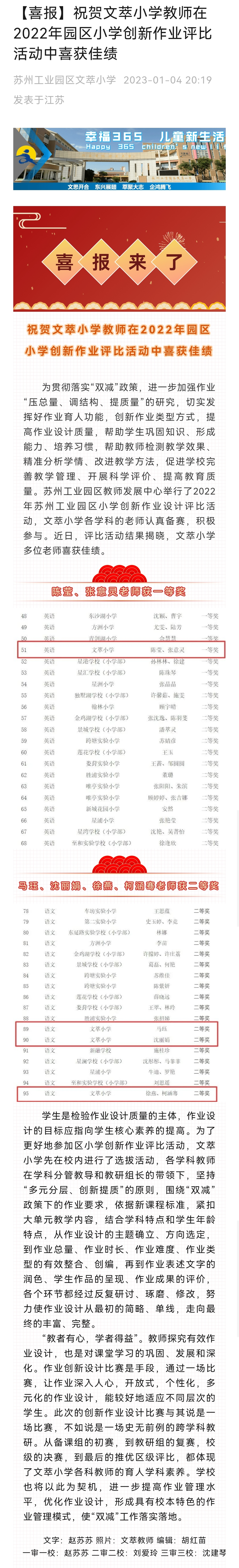 【喜报】祝贺文萃小学教师在2022年园区小学创新作业评比活动中喜获佳绩
