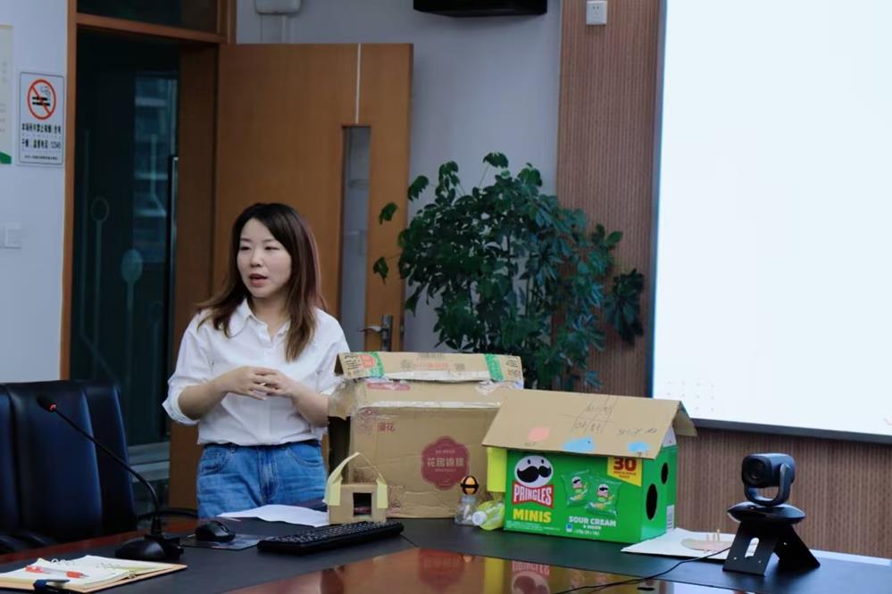 各个项目组进行项目进展汇报,他们扎实地开展研究,带来了阶段性成果。“大窝包小蜗”“我行我秀”“智慧烹饪”“磁力小车”“蚕丝扇”“校园智能助手”“神机妙蒜”“荒岛求生”“流浪猫之家”“改进洗手液”“VR建模”等十几个项目精彩亮相。