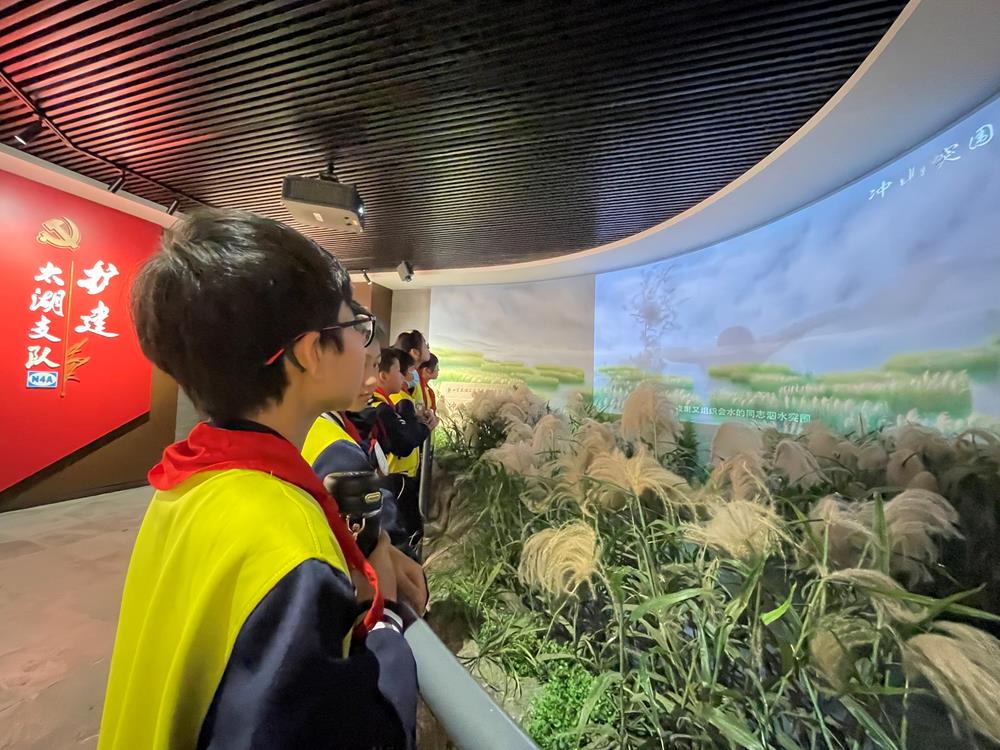 刚踏进“新四军太湖游击队纪念馆”,队员们仿佛走入了历史的长河中。纪念馆内一幅幅图片、一段段文字、一件件生活用品、作战工具让队员们身临其境,眼前仿佛出现了先辈们浴血奋战的场景。这些珍贵的历史资料及实物素材,生动地描绘了抗日战争时期勤劳、勇敢、智慧的苏州英雄儿女为保卫家园和祖国领土完整,顽强抵御侵略者的英勇事迹。革命烈士的赤子情怀和舍生忘死的革命英雄主义精神让队员们深深触动。