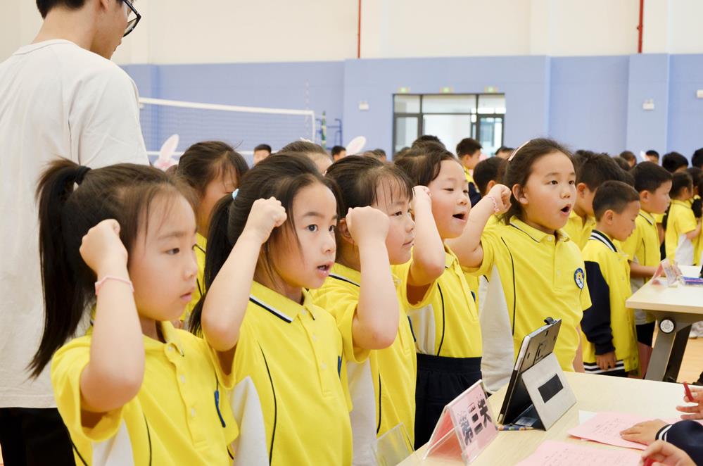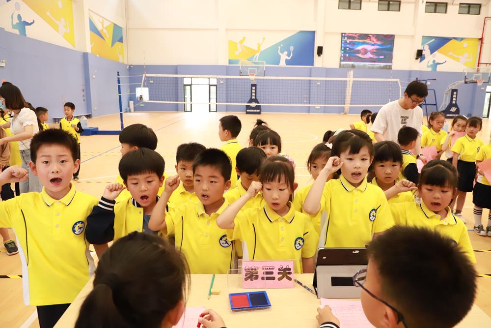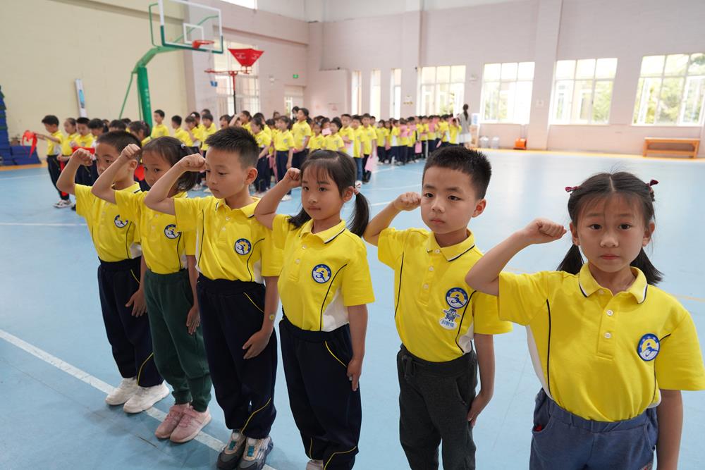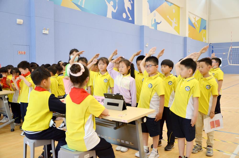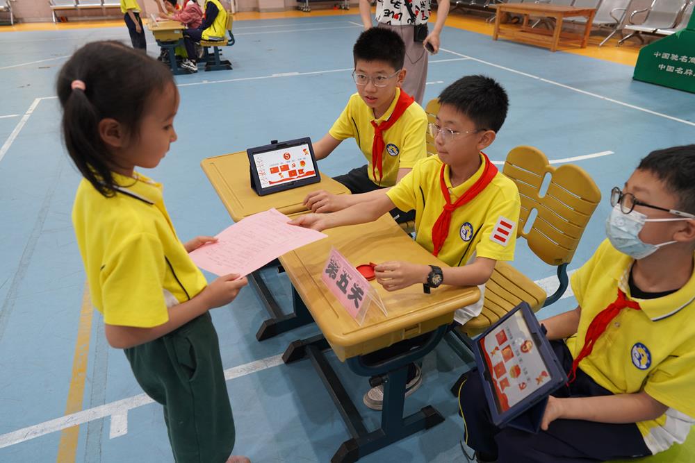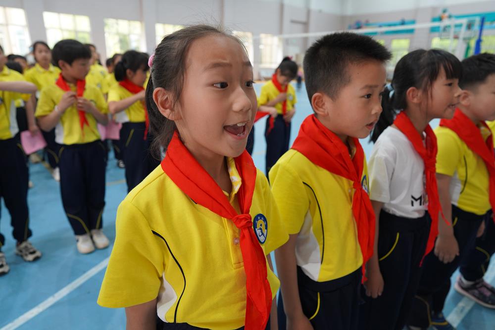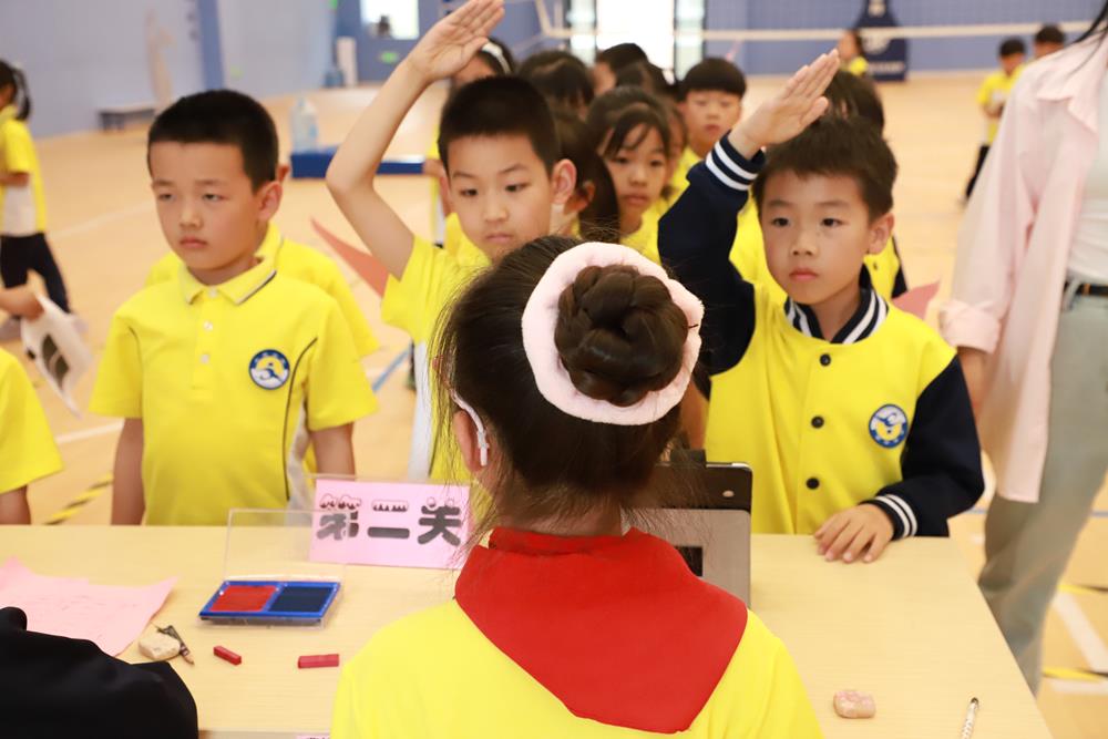 信心满满的小朋友们成功来到第三关。他们将每一句入队誓词铭记于心,背诵声音响彻全场,展现着为红领巾增光添彩的决心。