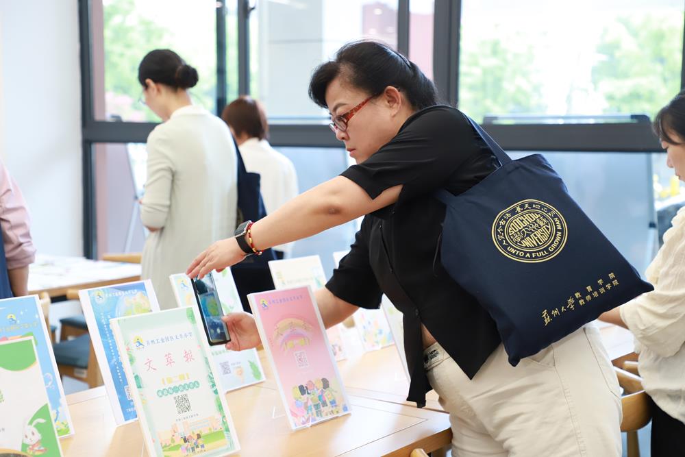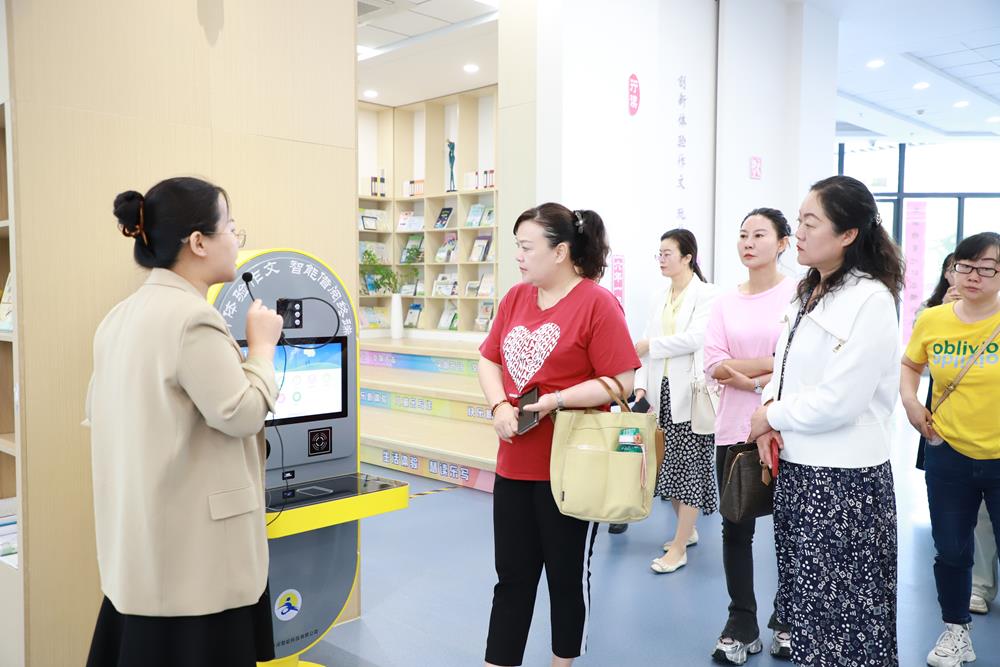 老师们首先参观了文萃小学企鸿路校区新体验作文课程场馆。在新体验作文馆内,老师们饶有兴致地参观了新体验作文特色成果展示,一期期精美的文心班刊,一份份制作精美的特色体验作品,展示了文萃小学近年来新体验作文特色的丰硕成果,引来老师们的啧啧称赞。