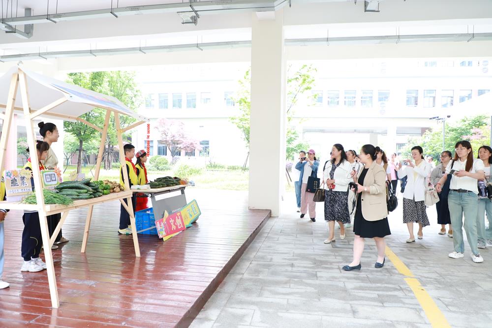 STEM耕耘项目组的展示区,孩子们亲手采摘的新鲜水果和蔬菜吸引了老师们的目光。这些蔬菜水果都是耕耘项目的孩子们在指导老师的带领下栽种的,利用智能化科学控制定时浇水,在孩子们的精心呵护下,水果蔬菜环保又新鲜,孩子们精彩的介绍赢得老师们的阵阵掌声。