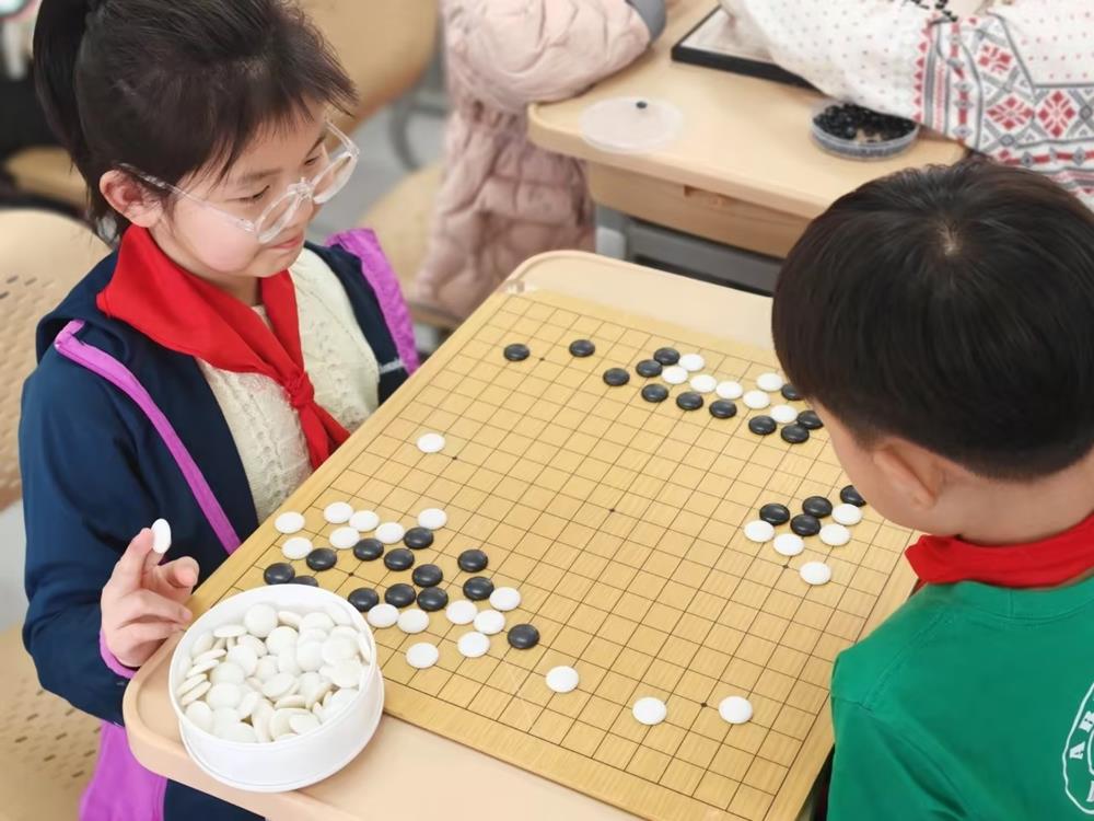 围棋,被誉为“东方智慧的瑰宝”,在这片19x19的棋盘上,黑白两子交织出千变万化的图案。学生们手执一黑一白,二人对弈,注重大局观和长远计划,谋定而后动,每一步棋都可能改变整个局势。