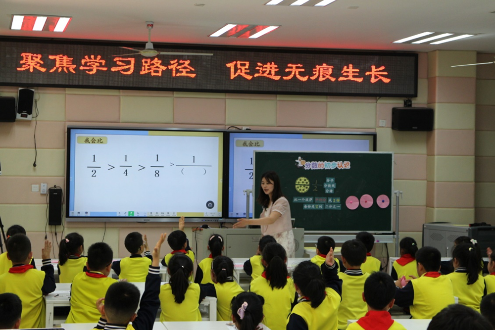 围绕本次活动主题,星洋学校刘亚芳老师和唯亭实验小学王榴妹老师分别执教《分数的初步认识》和《因数和倍数复习》两节课。