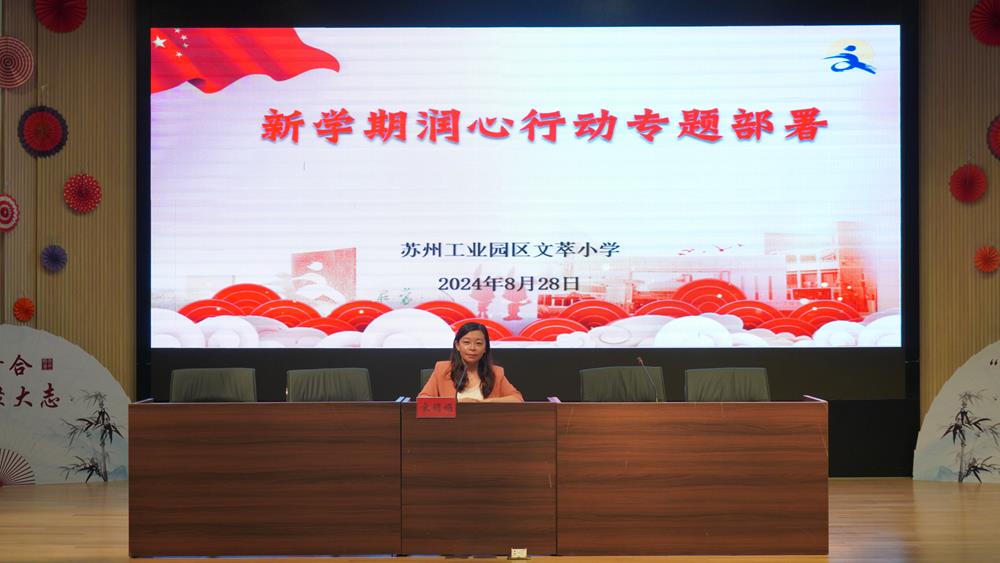 随后,宋娟娟副校长就新学期文萃润心行动作专题部署,细数平日润心点滴,展望未来全员导师德育行动。自“润心”行动启动以来,我校积极响应,开展了暖心家访、心理班会、课间爱心会谈、暑期“相约星期六”直播等一系列的“润心”行动,使学生们能够在关爱与支持的环境中成长,不断增强他们的自信心和抗挫能力。