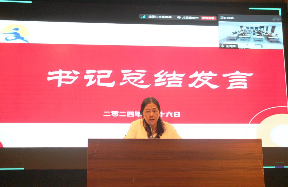 会议第三项议程,学校党总支书记凌红做总结发言,并就师德师风工作、润心行动工作做进一步部署,指导老师们牢记科学的发展观和育人观,用实际行动诠释新时代文萃精神。