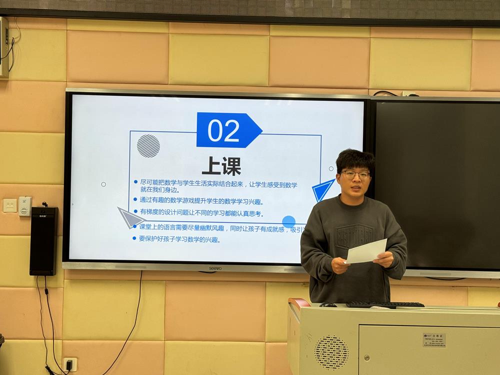 任建斌老师则分享了他教学生涯中的感悟与反思,从备课、上课和作业三个方面讲述了他在教学中的做法。突出强调了要摸清每个孩子的情况,老师在课堂上要幽默风趣,同时也要把数学课堂和生活实际结合起来。