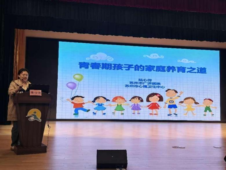 随后,苏州市广济医院儿少精神科陆心传主任为大家带来主题为《青春期孩子的家庭养育之道》的精彩讲座。陆主任从“在养育的过程中,你的烦恼是什么?”、“你了解你的孩子吗?”、“小时候的你”、“孩子的心理健康状态受什么影响”、“青春期心理发展、身体发展及思维特征”以及“养育重点”几个方面行了详细介绍与解答,引导家长们共同破解孩子青春期的情绪密码。最后,陆主任告诉大家,养育孩子要充分了解自己的孩子,适当了解心理学知识,掌握灵活的养育方式,着重培养孩子独立解决问题的能力,接地气的讲座得到了家长们的高度评价。