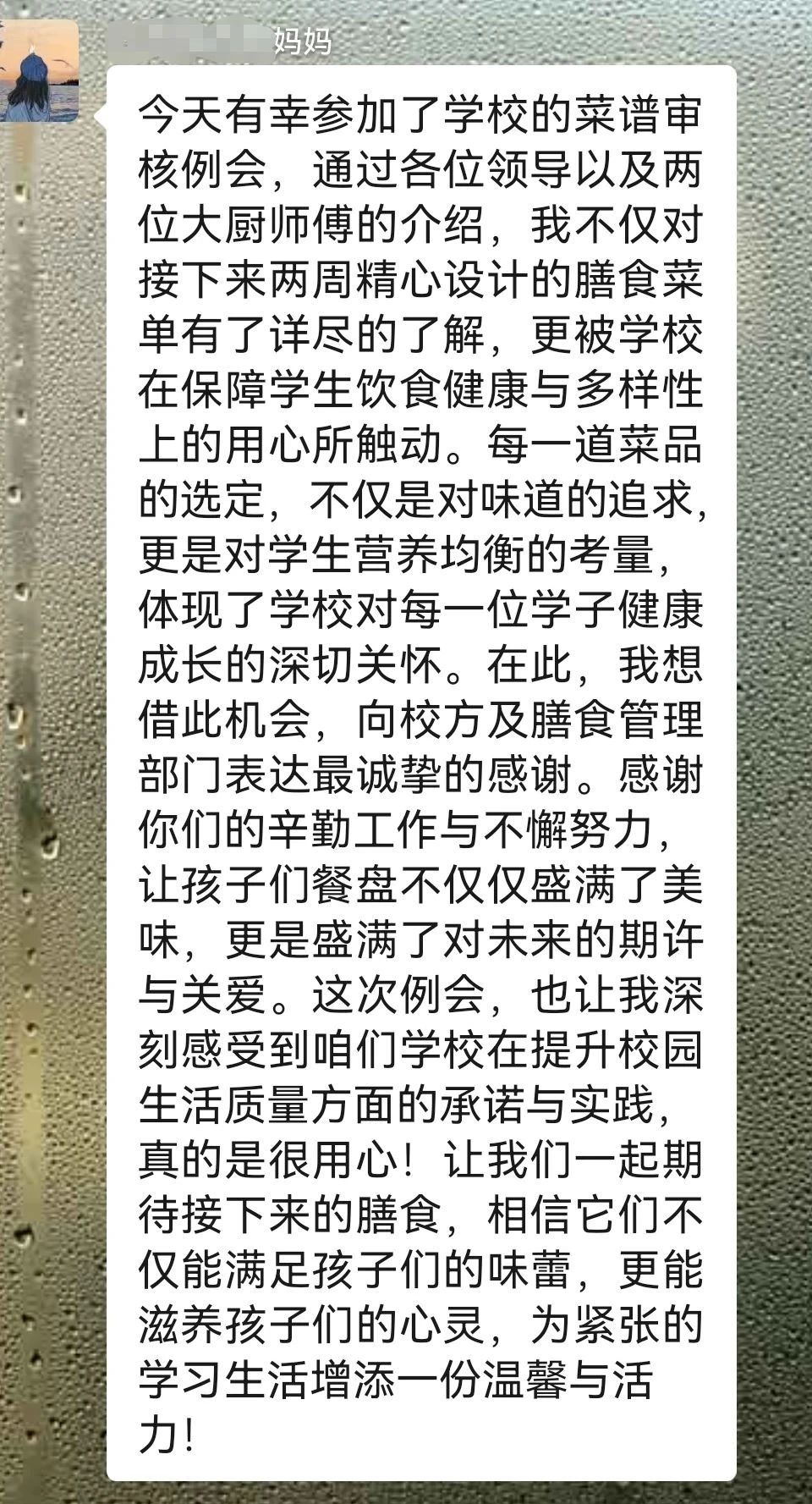 除了验菜和陪餐,家长们还积极参与到食堂的日常管理工作中。学校总务处会定期召开菜谱审核会议,家长代表们也共同参与,与会人员不仅会共同商议学校的下周菜谱,还就食堂的卫生状况、菜品创新、营养搭配等多方面问题进行深入探讨。