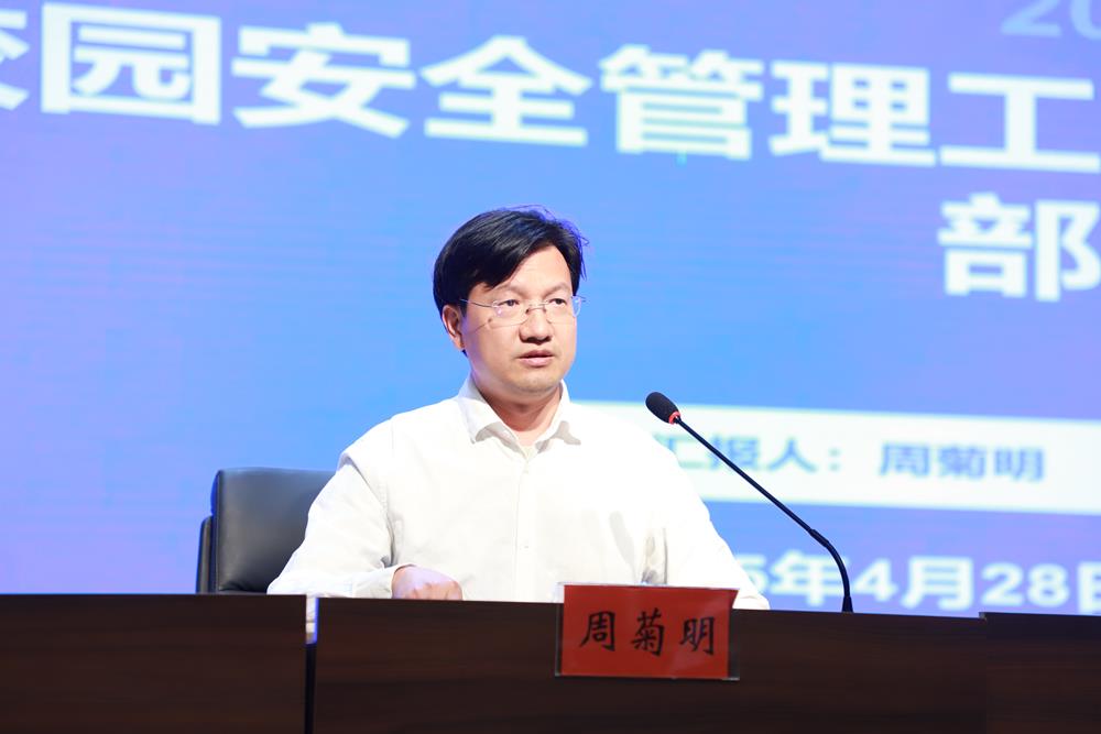 会议的第二项议程,周菊明副校长围绕“安全为基础”理念,强调全员需强化责任意识,聚焦学生在校安全与五一假期安全工作。周校指出,要关注校园设施安全、学生活动规范及学生的情绪引导,并在假期前开展涵盖消防、交通、防溺水、防欺凌等内容的安全专题教育。