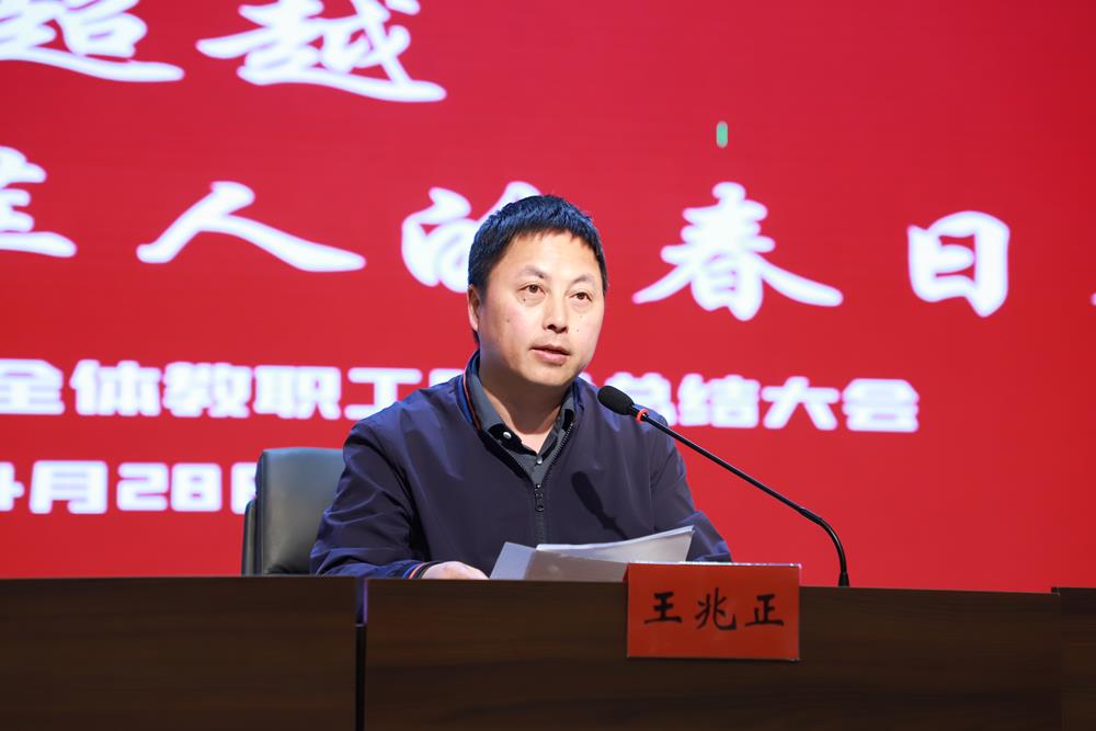 会议伊始,王兆正校长就学校阶段工作进行了全面总结。王校分享了四月以来学校师生在教育教学方面取得的丰硕成果。针对下阶段工作,王校提出 “发展为导向,德育为首要,教学为中心,安全为基础”的管理理念,强调学校管理从纪律、制度到文化的三层进阶。在教学工作中,要求落实园区“教学七认真”要求,聚焦“备学案设计”“作业有效性”“阳光辅导”等关键环节,因材施教提升教学质量。