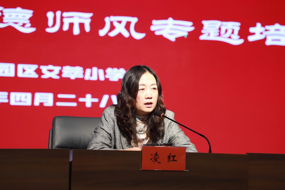 会议最后,党总支书记凌红为全体教职工进行师德师风专项培训。凌书记详细解读《文萃小学违反师德师风处理办法》,明确违反师德师风行为的认定范围及处理办法,强调要求教师要以“零容忍”态度严守师德底线。她特别提醒,教师需关注学生情绪变化,及时处理,化解矛盾,避免因小失大。